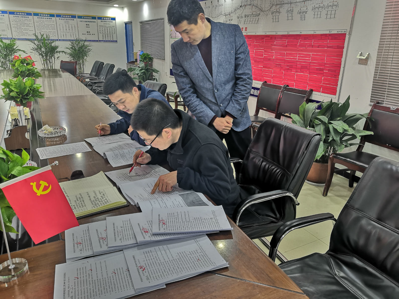 过程中,项目副总工余艮乐对试题进行了讲解,项目经理薛鸿儒对此次活动的重要意义进行了强调,鼓励参赛人员通过项目部开展的知识竞赛活动,学以致用,为进一步做好项目部的质量、安全、生产、经营等各项工作打下牢固的理论基础。