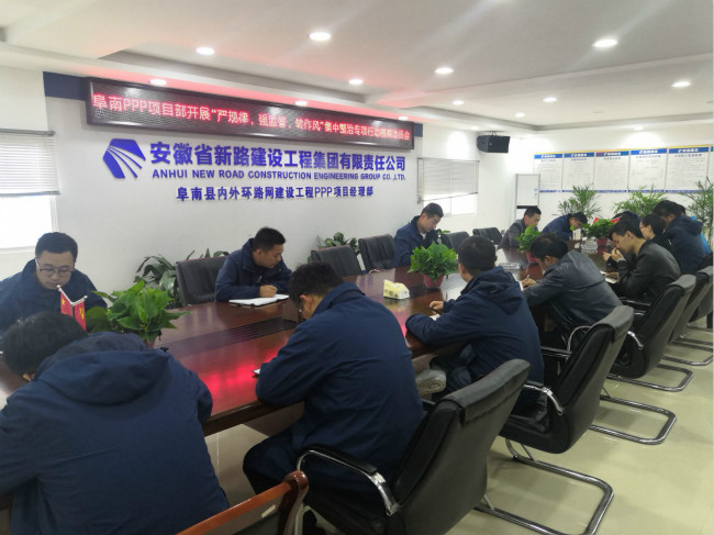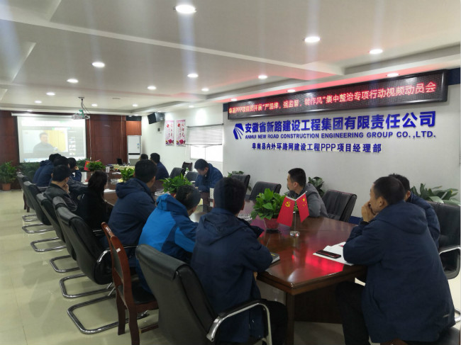 为深入落实集团公司党总支认真开展“严强转”专题集中整治形式主义官僚主义专题学习工作,4月29日中午,阜南县内外环路网建设工程PPP项目部以学习财政局党组104号文件+视频学习形式,召开“严规矩、强监督、转作风”集中整治形式主义官僚主义专项行动动员会。传达阜阳市财政局党组关于组织开展“严规矩、强监督、转作风”集中整治形式主义官僚主义专项行动暨“财政作风建设年”实施方案》有关文件精神,并就开展专项行动进行全面动员和安排部署。项目经理薛鸿儒参加会议并讲话。