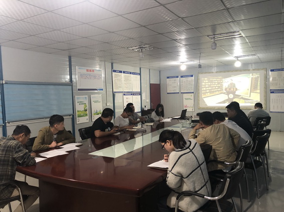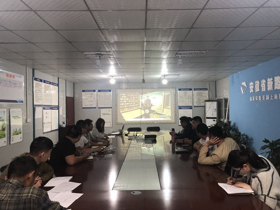 全体员工观看道德讲堂视频中