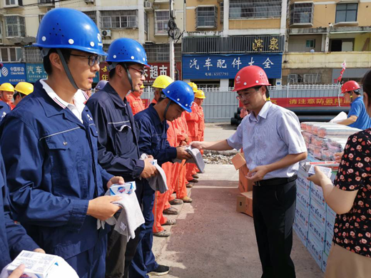 随后领导们为现场工人发放慰问品,大家收到慰问品都热情高涨,在炎热中感受到丝丝凉意,更加的不畏酷暑,积极努力的工作,为临泉建设的更美好多出一份力量。