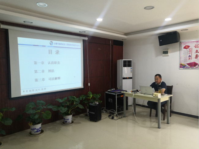 为提高全员安全意识和了解安全领域涉及刑事犯罪知识,保障员工具备从事本职工作所需的安全法律知识,预防安全事故的发生,做一个合格的安全管理人员。8月24日上午,阜南沿淮项目部、S305项目部至阜南PPP项目部会议室参加集团公司安全部举办的关于《安全生产领域刑事犯罪》暨《如何做一名合格的安全管理人员》专题培训会。培训由集团公司安全部副部长苗玉磊主讲,阜南PPP项目部全体管服人员参加了本次培训。