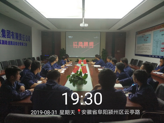 为切实增强反腐意识,深化个人修养,8月31日晚,阜阳市城南新区淮河路、紫云路、航颍路道路及综合管廊工程项目部组织全体职工观看纪实专题片《红色通缉》。