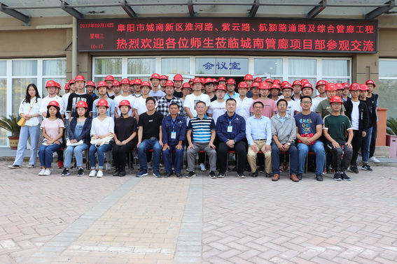 2019年9月18日,安徽理工大学土木建筑学院60余名师生莅临阜阳市城南新区淮河路、紫云路、航颍路道路及综合管廊工程项目部观摩交流。