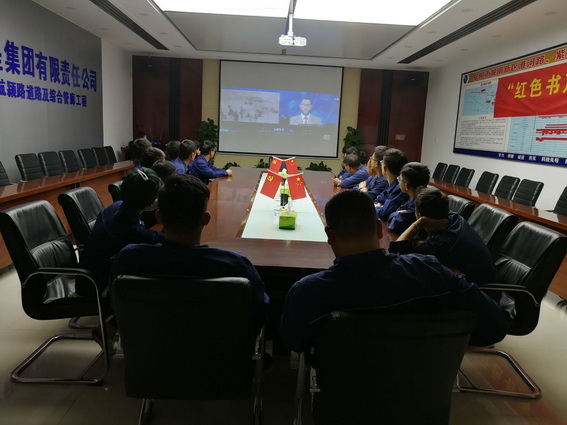 活动开始,项目总工季晓俊带领大家学习《习近平新时代中国特色社会主义思想学习纲要》第一章内容,深入解析我国发展新的历史方位,并推荐一批红色经典书籍。随后,项目部全体职工观看爱国主义题材电影《红海行动》,切实感受伟大的爱国精神和民族情怀。