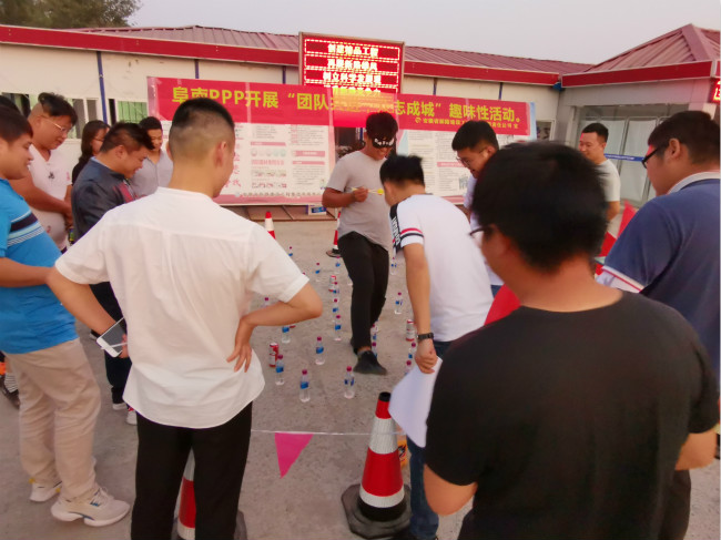 在国庆来临之际,为了使员工度过一个欢乐、和谐的节日, 9月30日下午六点,在阜南PPP项目部综合办公室的精心组织下,举办了“团队共进,众志成城”趣味性文体比赛活动。