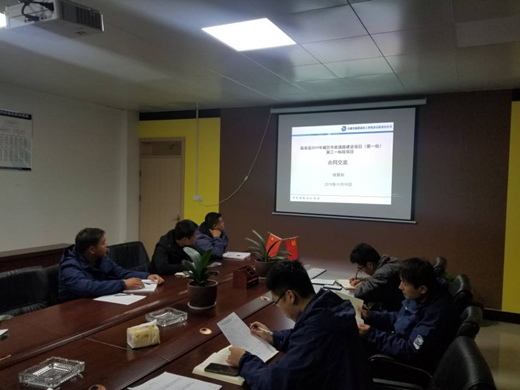 临泉市政项目部2019年11月27日利用阴雨天气组织项目管理人员进行主题为“项目部合同、成本、验工计价”的知识培训活动。