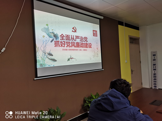 活动开始,项目负责人董国庆向大家讲解党风廉政建设的必要性,强调腐败是国之大敌,党之大敌,民之大敌。党风、政风的好坏,事关人心向背。项目部所有成员一定要深刻认识到党风廉政建设和反腐败斗争的重要性。随后又从加强党性党风党纪教育、规范权力运行、加强监督等方面阐述如何抓好党风廉政建设。接着项目部成员共同观赏了《家风》廉政短视频,让员工进一步加强廉洁意识,提高自身素质。最后项目负责人董国庆表示要做到廉洁从业,首先要确保思想上过关,并在工作中找到切入点,加强学习,提高自身素质,做到学以致用。