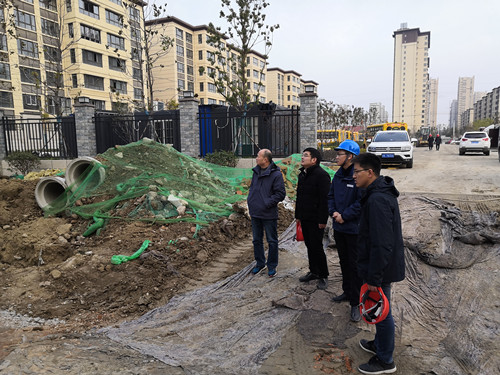 正在建设中的临泉市政项目进展如何,时刻牵动着临泉县重点局各级领导的心,2019年12月21日下午,临泉县重点局谢局长带领局相关领导同志到我部美苑路水稳施工现场检查指导工作。