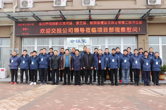 1月21日上午,交投公司总经理王磊、监事会主席江玉友一行,在mansion88明升建设集团董事长唐谦和总经理韩恒忠的陪同下,莅临阜阳市城南新区淮河路、紫云路、航颍路道路及综合管廊工程项目部,对坚守工作岗位的一线员工带来了新春的问候。
