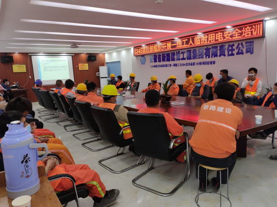 4月28日中午12:00在临泉G345 临泉至关庙段改建工程一期施工(S204至关庙段)1标项目部会议室组织开展一线工人临时用电安全培训,参加培训的有各班组、各工区负责人、安全人员等。