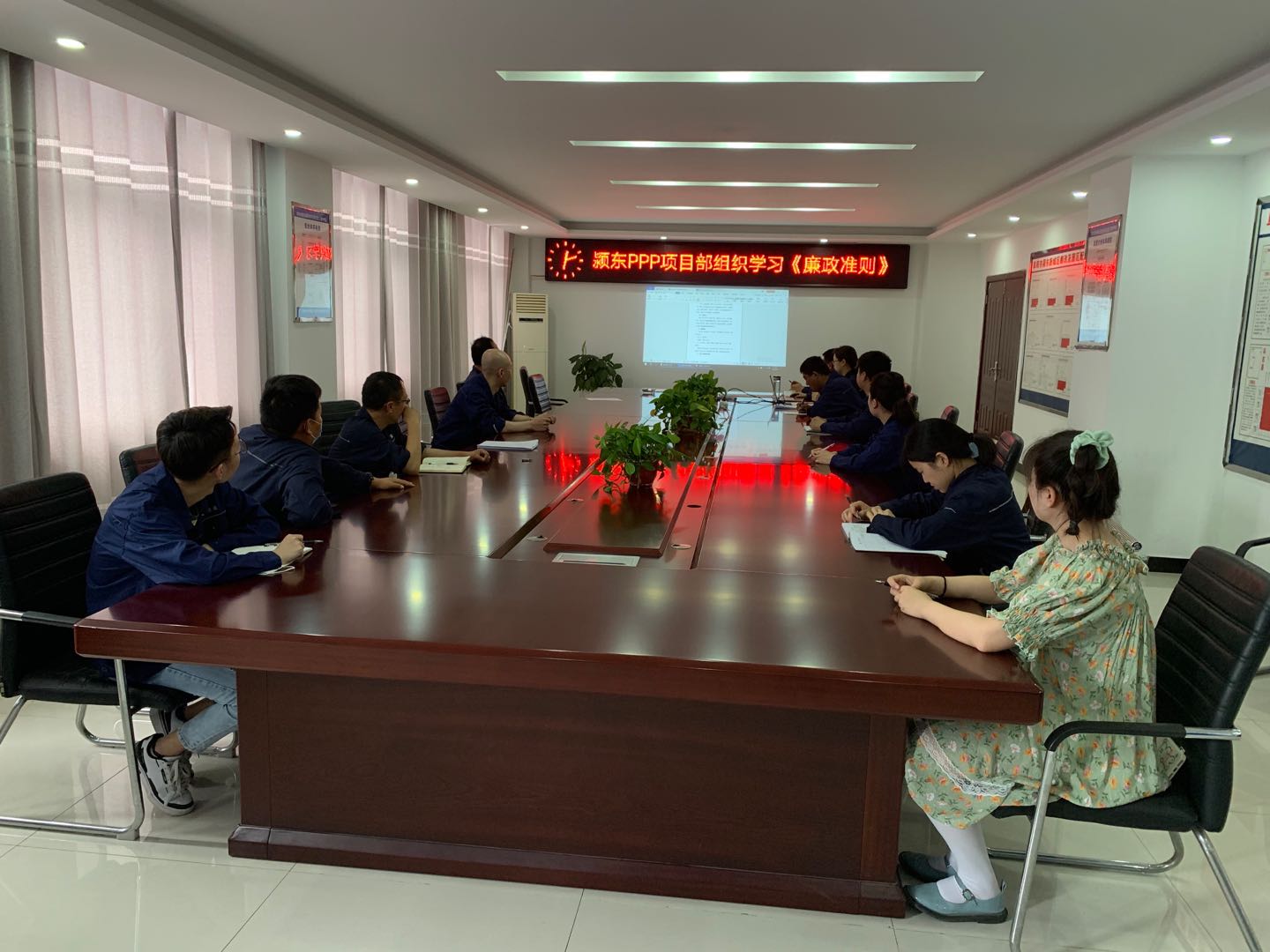 为继承和发扬党的优良传统和作风,努力弘扬中华民族传统美德,永葆党的先进性和纯洁性,颍东PPP项目部于6月10日,组织员工集中学习了《中国共产党廉洁自律准则》,会议由项目经理王震主持。