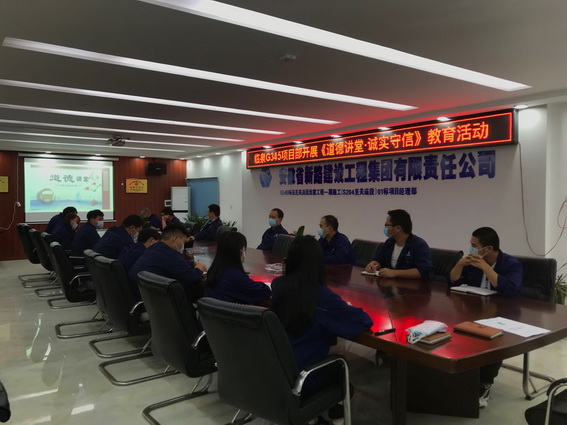 为适应新形势的发展,大力弘扬中华民族道德力量,6月18日我部在项目部会议室开展了“道德讲堂·诚实守信”主题教育活动,本次“道德讲堂”活动全体人员参加。