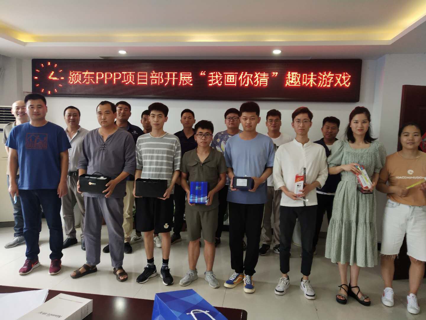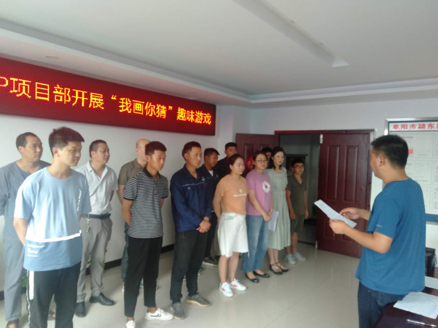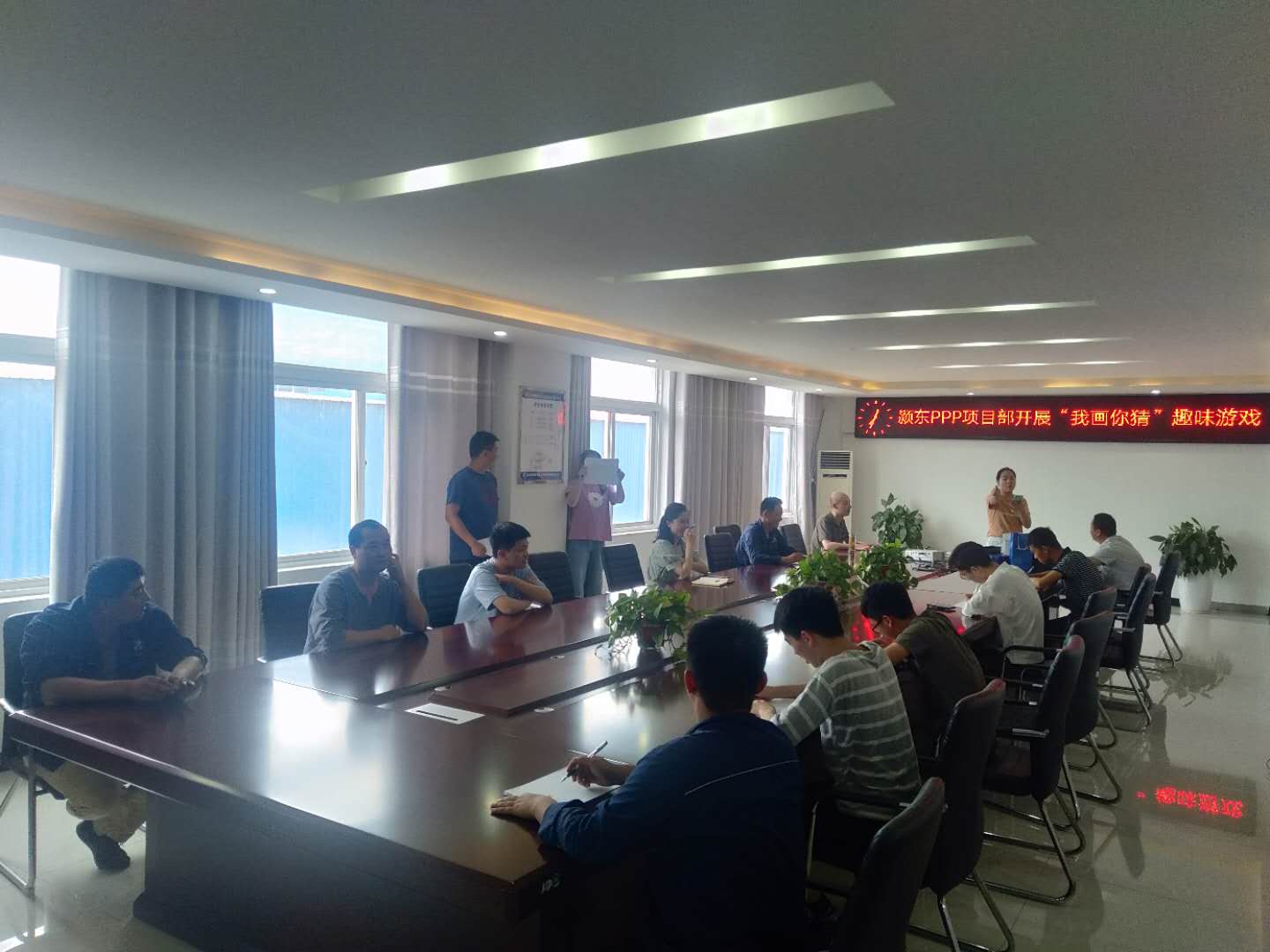为更加充分的展现颍东PPP项目部员工积极向上的精神面貌,丰富项目部企业文化,缓解工作压力,2020年6月26日我部开展了“我画你猜”趣味游戏比赛。 比赛设裁判一名,计时人员一名,出题者一名,参赛队伍七组。