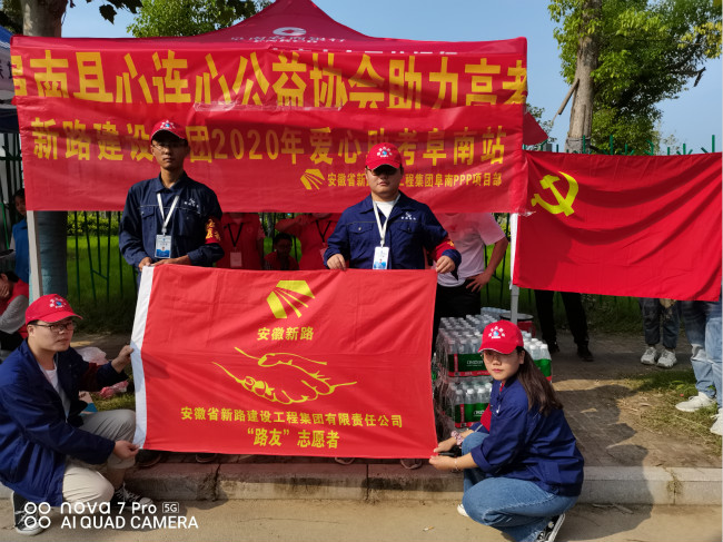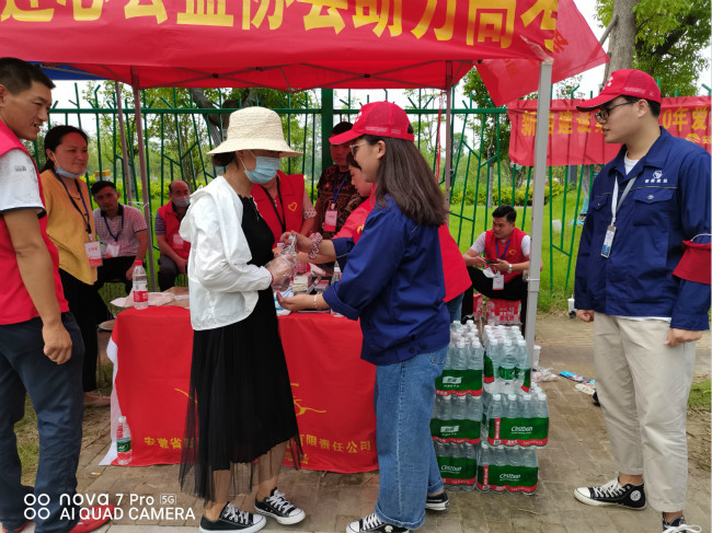 阜南PPP 项目部组织项目部党员、团员志愿者、青年志愿者等在校门口设立“高考志愿服务台”,并在考点为考生和家长们提供全程服务,免费为广大考生提供所需的2B铅笔、签字笔等文具;为考生及家长们提供矿泉水、风油精、抽纸等降温用品,为考生们送去一声祝福、一份温馨。