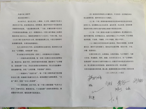 谁知盘中餐,粒粒皆辛苦。项目部员工们纷纷以各种形式表达自己对“光盘行动”的认同。员工们用手中的笔,以共同签名的形式,表达对粮食来之不易的认同,提醒人们:饮水要思源,吃饭要节俭。一粥一饭,当思来之不易。员工们认真吃完自己碗中的饭,用自己的行动践行光盘行动,做文明的传递者。