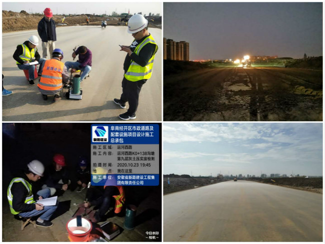 国庆至今,阜南PPP项目奇泉东路沥青上面层的摊铺正在顺利推进,沥青上面层已完成摊铺2KM,附属工程已进入全面穿插作业。预计十二月份本条道路将完成交工验收。与此同时,贺胜西路、京九南路桥涵工程已全部完成,土方工程均已完成过半,道排工程正按既定计划进行中;项目部统筹组织设备和人员进行连续作业,水稳摊铺施工日夜奋战稳步推进。累计至本月共完成产值18539.43万元,完成总产值的42.89%。