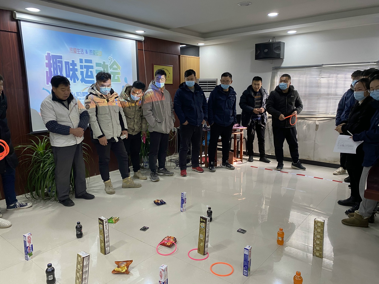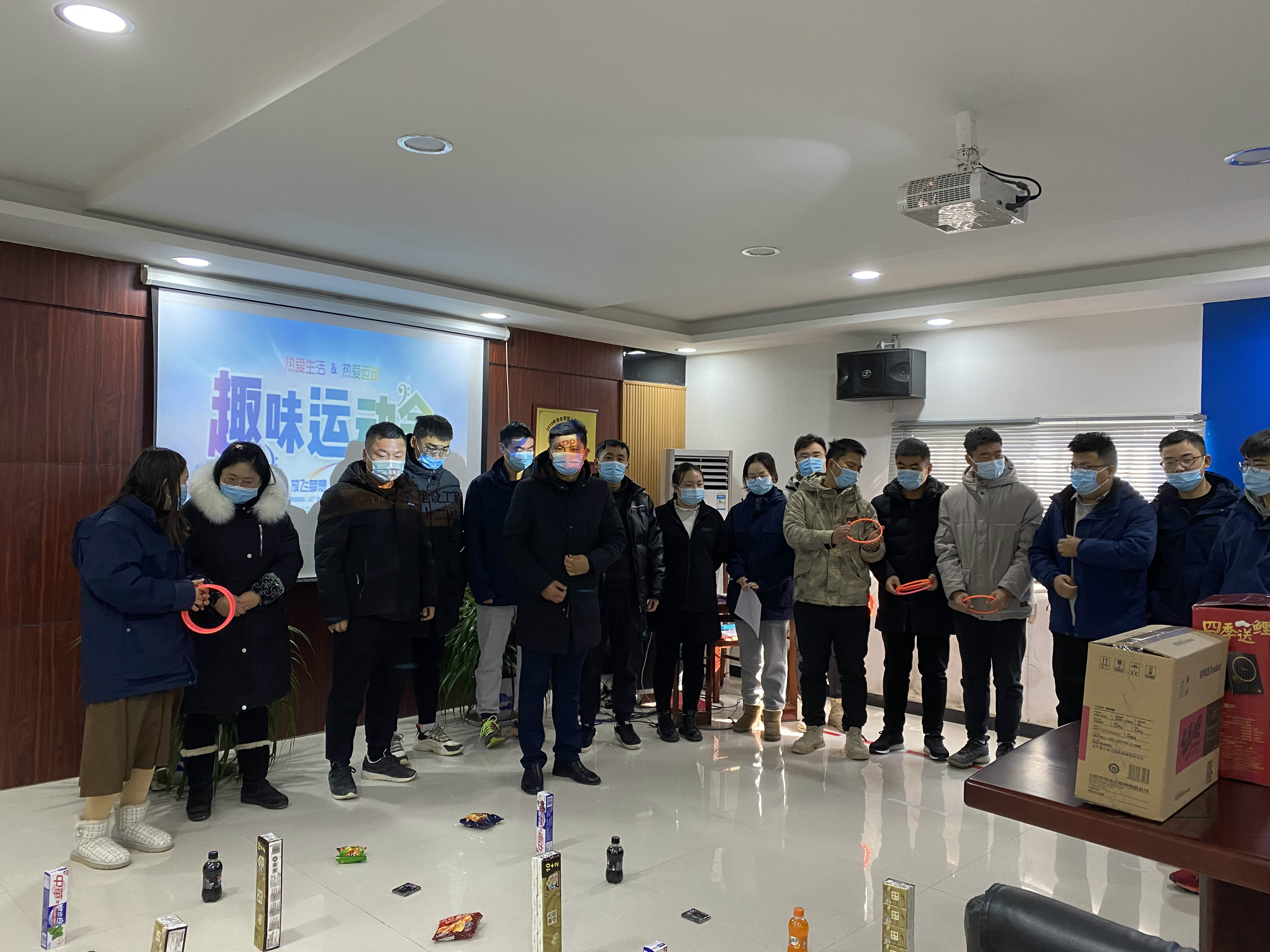 为了展现职工良好的精神风貌,丰富员工文化生活,增强集体凝聚力,项目部于2020年12月30日在会议室举行了一场别开生面的趣味套圈活动。