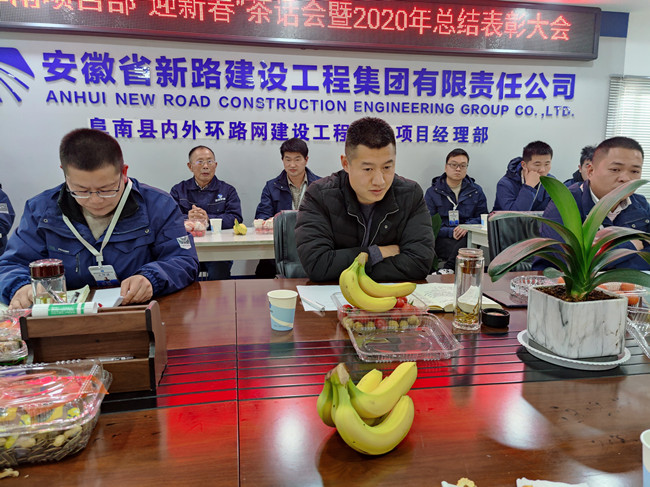 在会议之初,由主持人播放阜南项目2020年总结回顾视频,视频内容包含施工剪影、调研迎检、抗洪救灾、团建展示、党建及培训、项目例会、荣誉成果七部分组成,以视频的形式大体上总结了2020年阜南项目的工作面貌及荣誉,鼓舞了项目部成员的信心,增添了集体荣誉感与凝聚力。