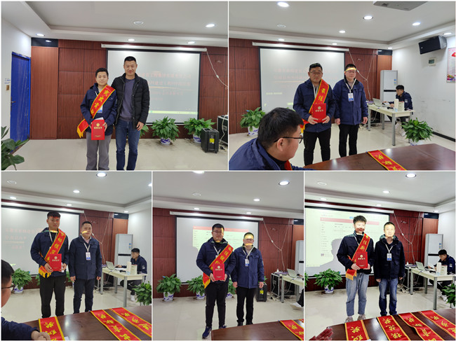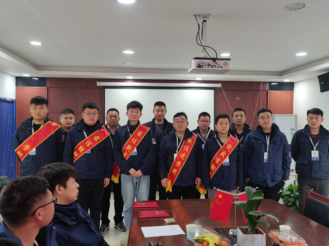 项目负责人薛鸿儒、总工余艮乐、经理助理岳振、张海涛分别为优秀员工颁发证书及绶带