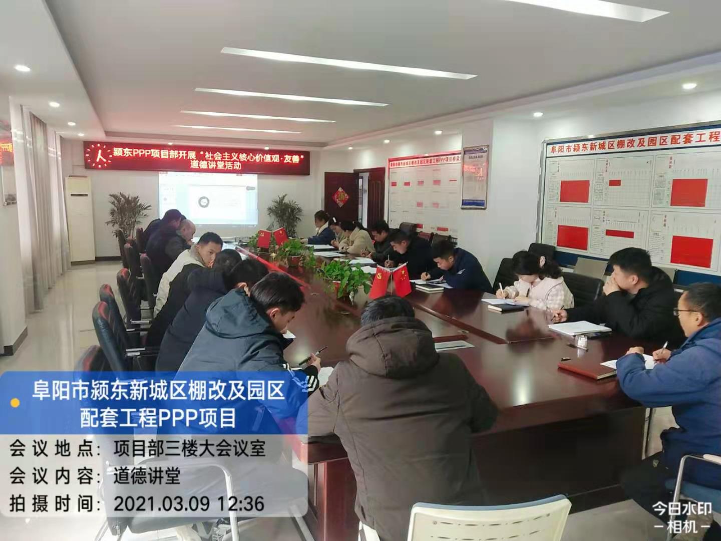 3月9日下午,颍东PPP项目部组织开展“社会主义核心价值观·友善”道德讲堂活动。活动由项目经理王震主持,项目部成员参加。