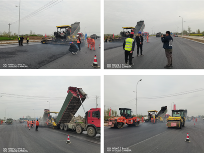 项目负责人薛鸿儒向记者详细介绍了阜南PPP项目建设推进情况,并表示目前项目部所承担的施工建设已经进入最后冲刺阶段,各项施工任务正在与时间赛跑,紧锣密鼓、快马加鞭地进行着。为了确保建设高质量的黑色路面,项目部严格按照沥青施工标准化要求,严格配合比设计;沥青摊铺过程中,严格把控出机温度、压实温度以及摊铺温度;并按照不同工序,安排专人负责场前、场后、拌合、摊铺、压实、检测等方面的质量监控。
