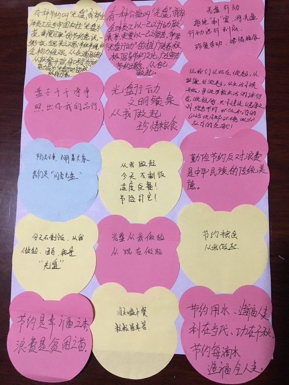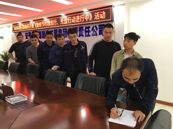 我部利用午餐时间发动宣传,由项目总工在电子屏前面向全体成员发出倡议并宣读活动方案告诉大家“光盘行动”的必要性和重要性。随后,项目全体人员通过整齐排队打饭就餐、张贴宣传标语、刊出手抄报、在方案上承诺签名等形式,倡导大家继承和发扬中华民族勤俭节约的传统美德,积极参与光盘行动,争做爱惜粮食的倡导者、践行者和宣传者。活动结束后利用厂务公开栏公示活动方案、活动总结、员工宣传标语,时刻提醒大家要争当“勤俭节约,从我做起”的示范者和传播者。