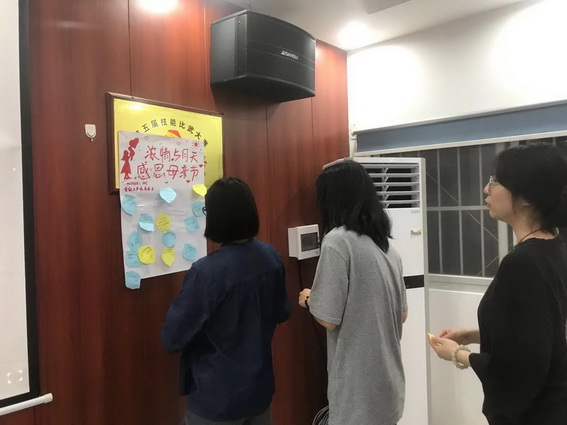 活动当天把对自己母亲最想说的话粘贴在爱心墙上