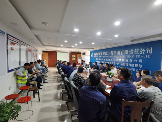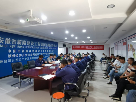 项目部全体人员在会议室开展“安全生产月”活动动员大会