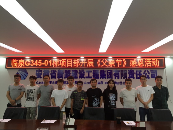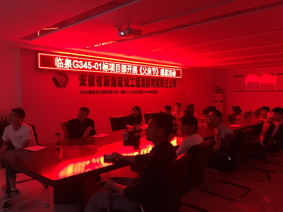 本次活动提前制订了活动方案,大家共同宣读父亲节活动倡议书并在倡议书上签字,随后观看微电影《搭错车》,电影结束后大家站在电子屏前留影,纷纷表达了对父亲的思念把自己最想说的话写下来。“总是向你索取却不曾说谢谢你,直到长大以后才懂得你不容易,每次离开总是装做轻松的样子,微笑着说回去吧转身泪湿眼底,”开路先锋总是背井离乡,很少能够陪伴在家人的身边,也很少能够表达对他们的爱。同时,项目部通过本次活动也为项目上已经成为父亲的员工送去了祝福。