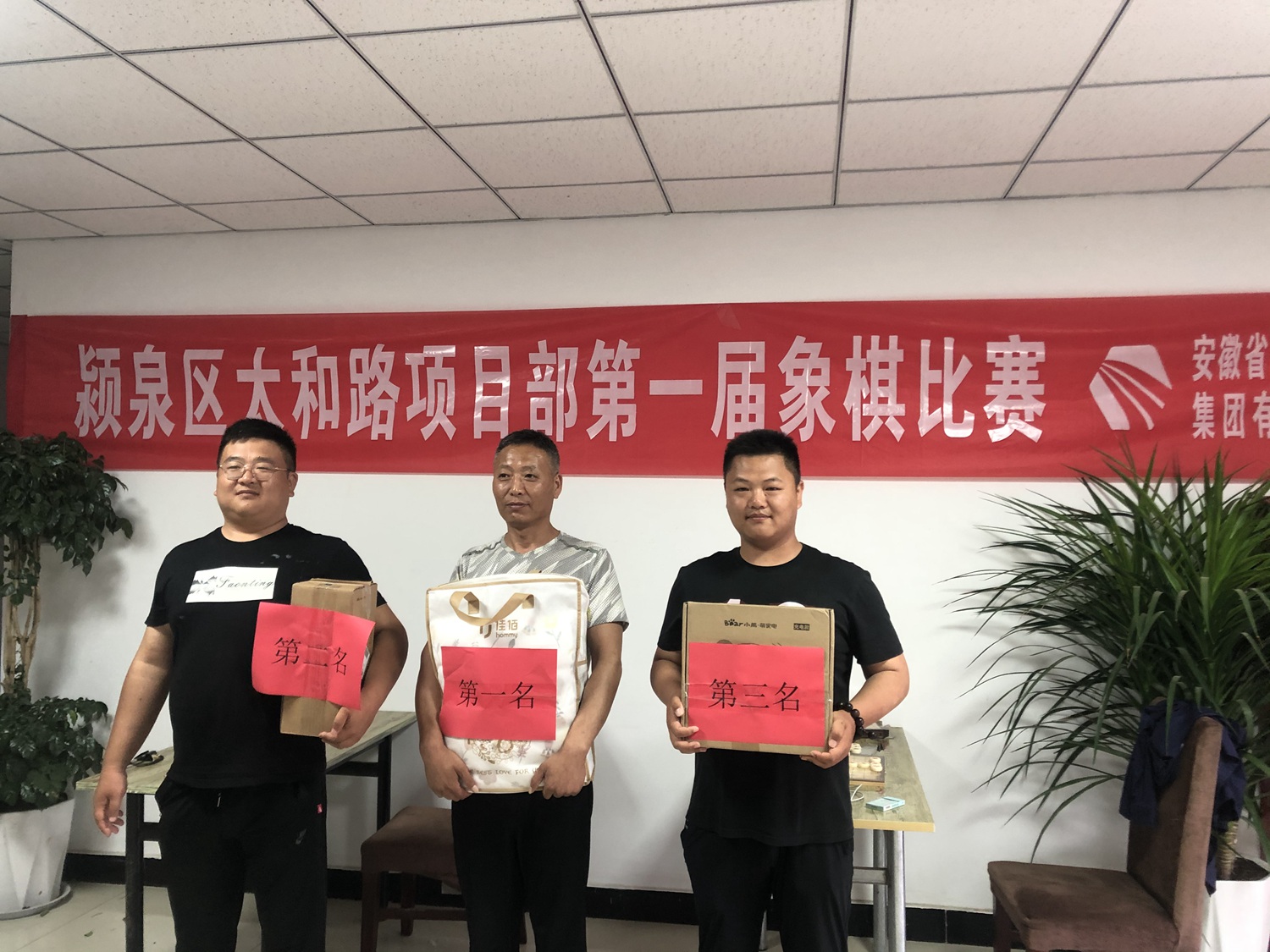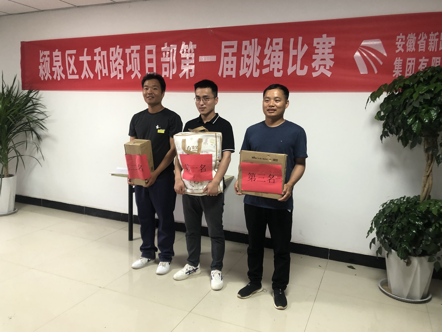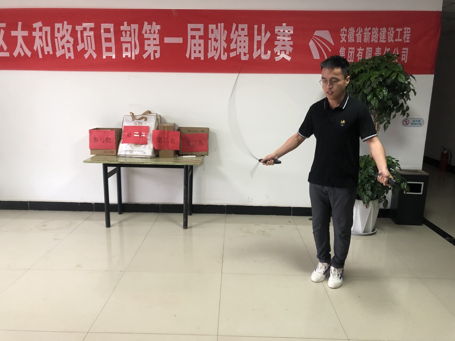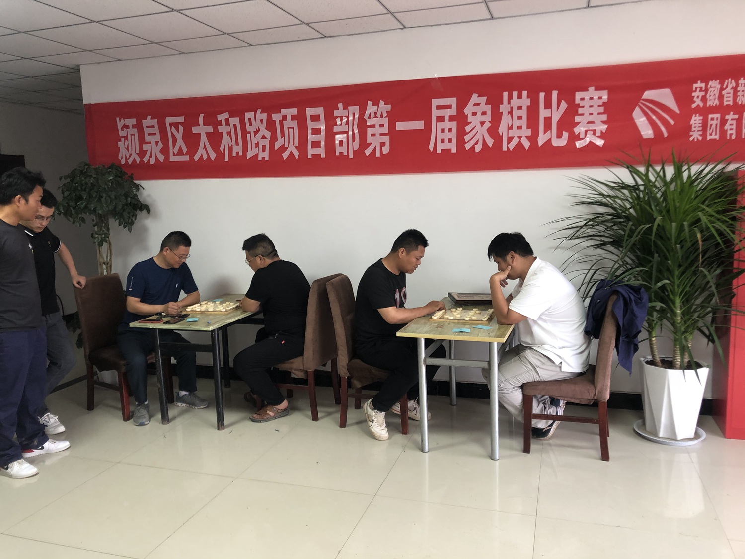 为放松职工心情,增进职工感情,6月26日颍泉区太和路项目部利用阴雨天气,举行跳绳和象棋比赛,比赛吸引了十几位员工参加。