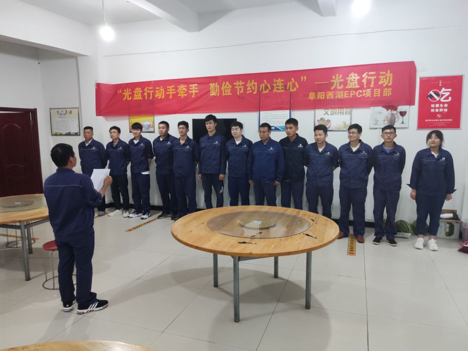 为响应集团公司文明节俭的号召,更好的贯彻学习《反食品浪费法》文件精神,阜阳西湖EPC项目部于7月19号晚举办了“勤俭节约、反对食品浪费、光盘行动”。在员工中倡导节俭用餐,形成文明用餐、节俭惜福的良好风气。