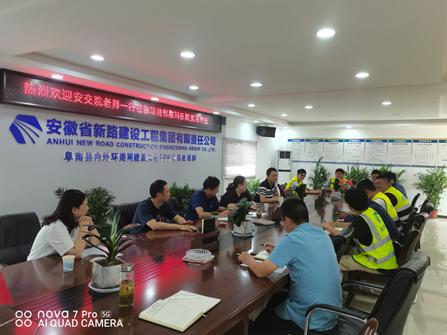 为及时掌握实习动态,了解学生实习情况,加强与实习单位的交流合作,7月22日下午,安徽交通职业技术学院土木工程系副主任王守胜及2018、2019级mansion88明升班辅导员一行走访mansion88明升建设集团阜南PPP项目部看望慰问实习学生并在项目会议室召开座谈会,集团公司人力资源副总监魏静、项目总工余艮乐、mansion88明升班学生参加座谈会。