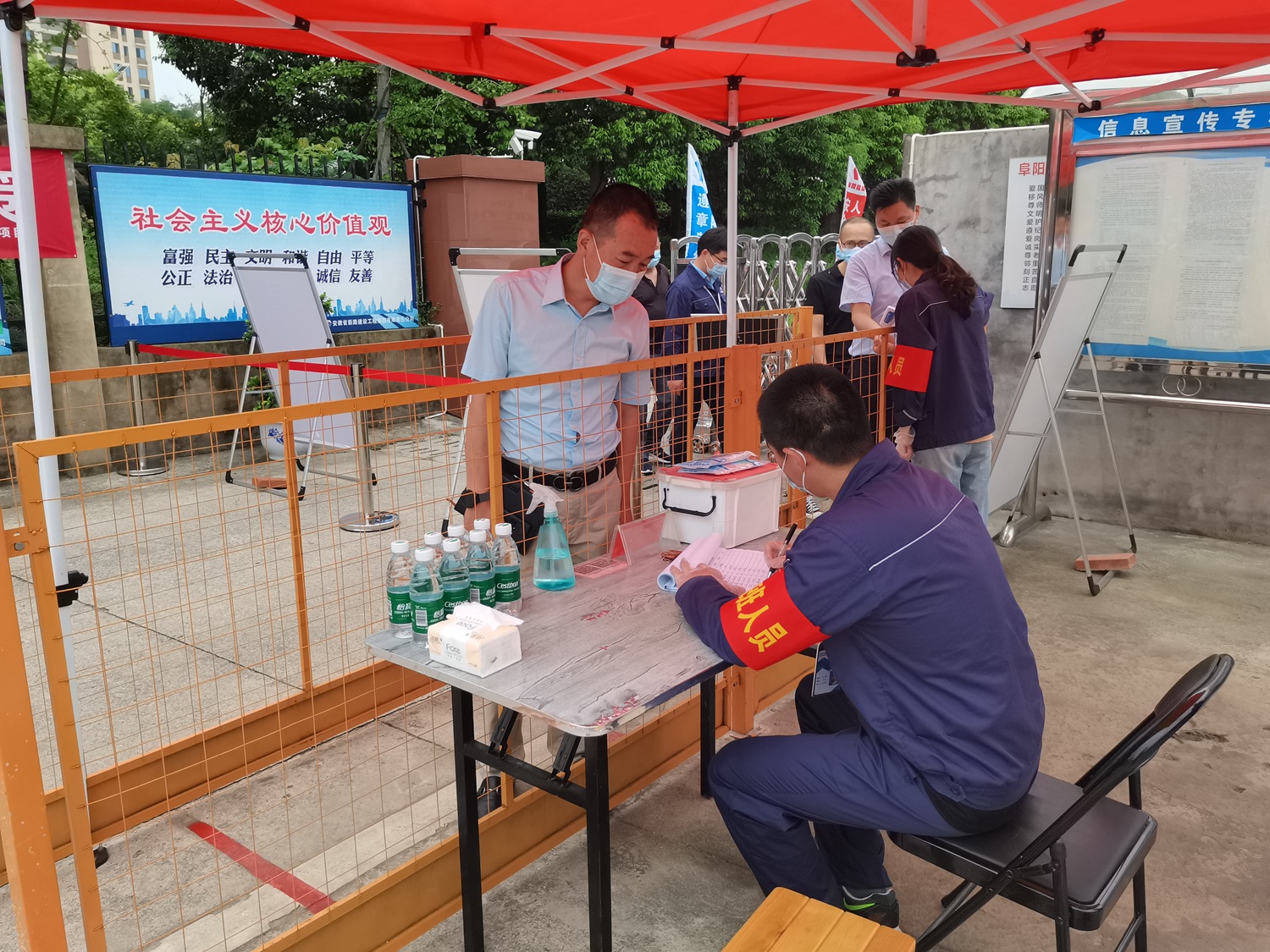 项目部对来访人员进行体温测量并登记