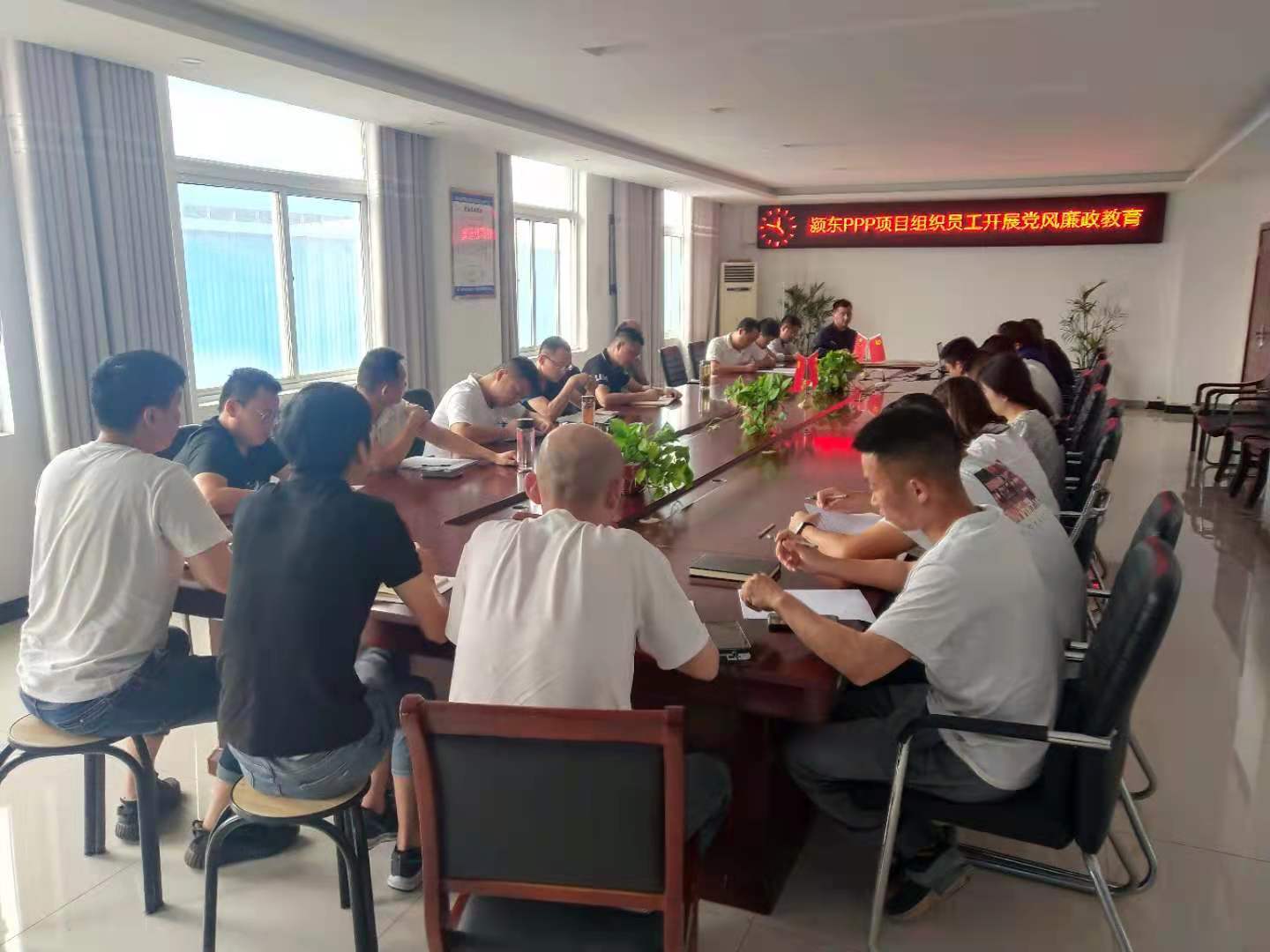 8月24日,颍东PPP项目召开党风廉政建设专题会议,会议由项目经理王震主持,项目部全体成员参加。会议总结回顾了项目部2021年上半年党风廉政建设工作,对下半年党风廉政建设工作进行安排部署。
