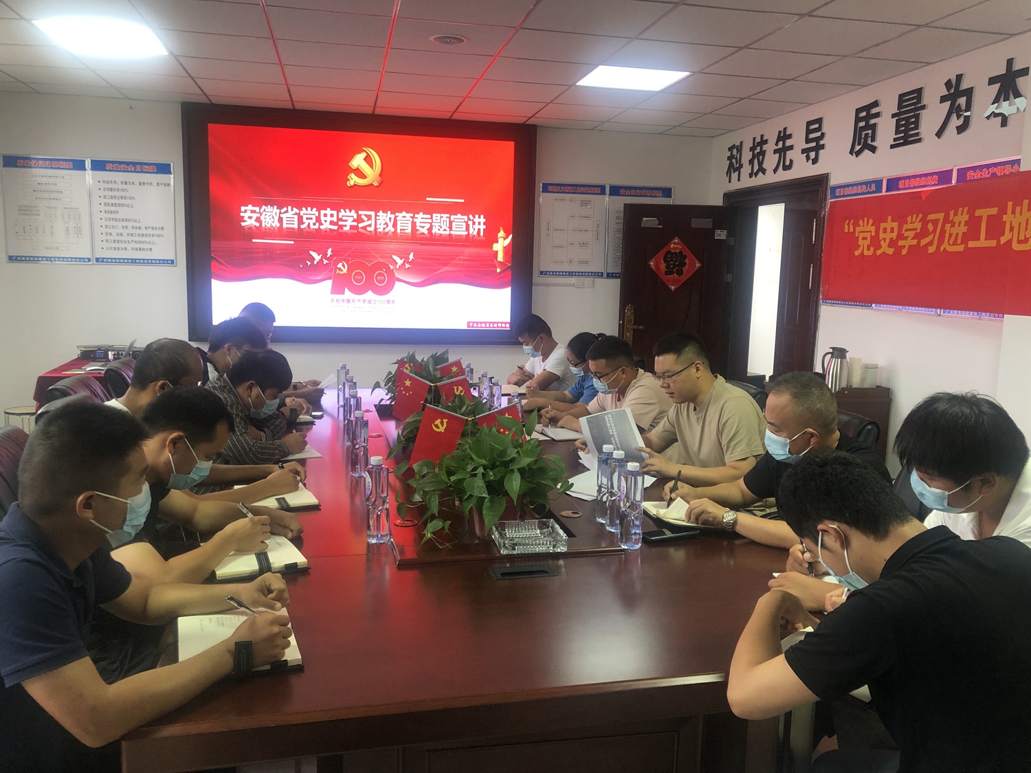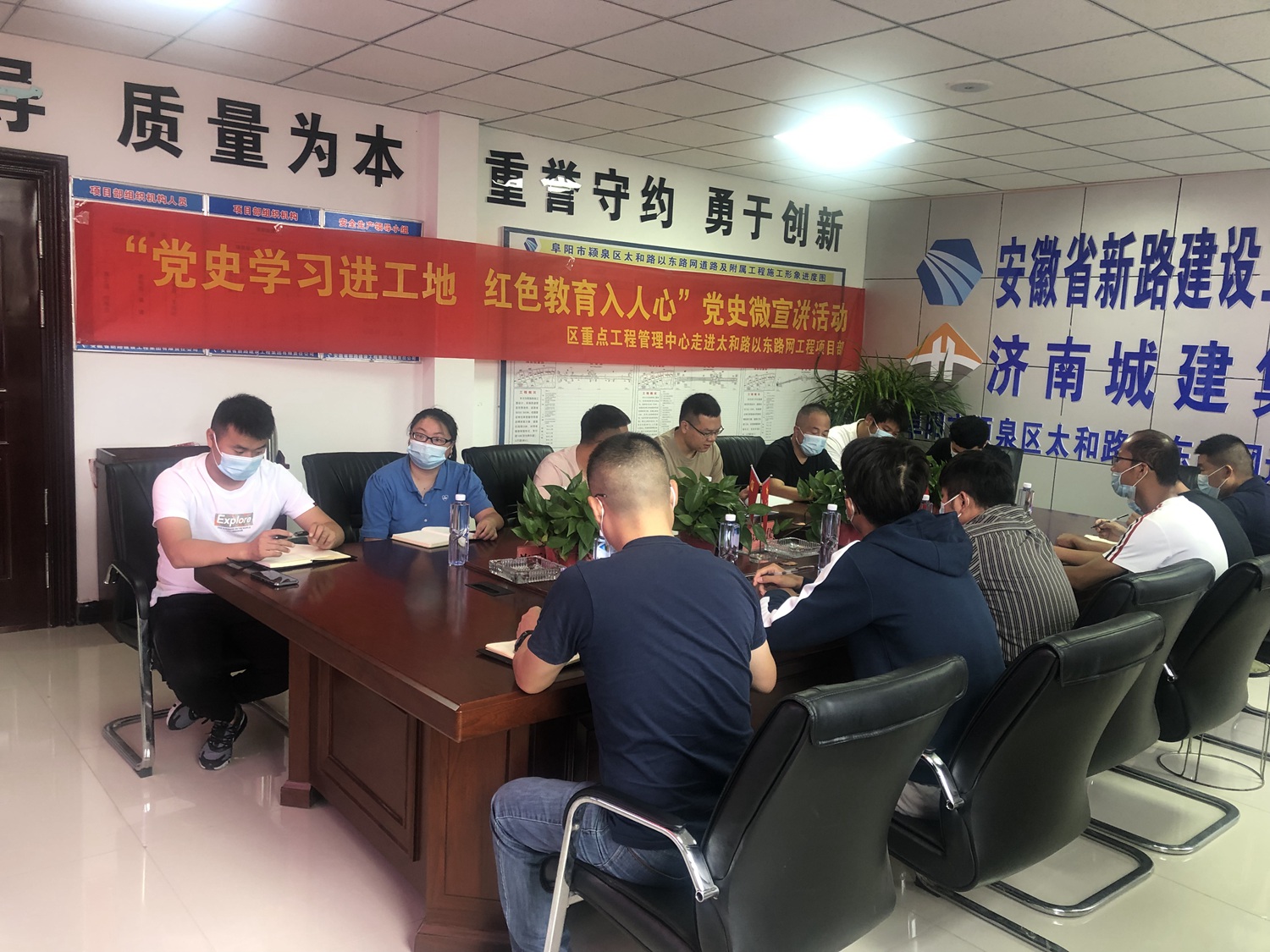 8月27日上午,颍泉区重点工程建设管理中心党史宣讲走进太和路项目部,以习近平总书记七一重要讲话精神为主要内容,给管服人员和一线工人进行党史学习教育专题宣讲。
