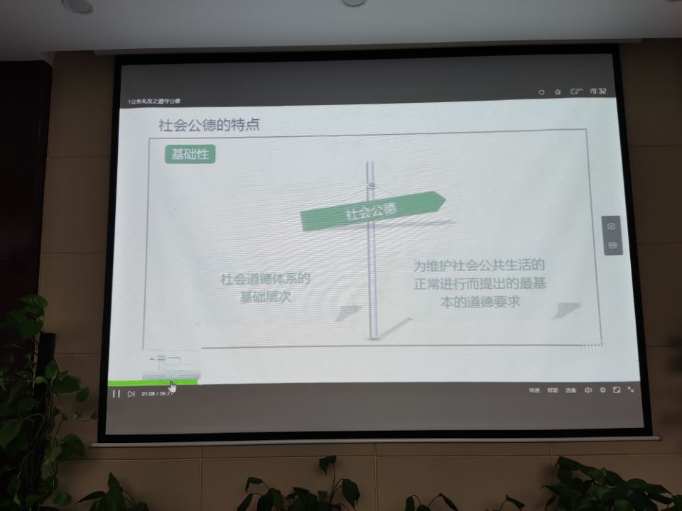 本次教育学习以观看视频为主,视频主要讲述了中国社会公德,仁、义、信、温、和、恭、检;外国的道德:自由、公正、人道、慈善;从关系上理解,就是人与群体该如何处理,如集体主义、人道主义、爱国主义等。培训结束后,项目部总工季晓俊对此次培训进行了点评总结,在工作中,我们是文明的员工;在社会中,我们是文明的使者。我们要从生活中发现爱,发现美,从自我做起,从一点一滴做起,努力提高自己的社会公德及修养。