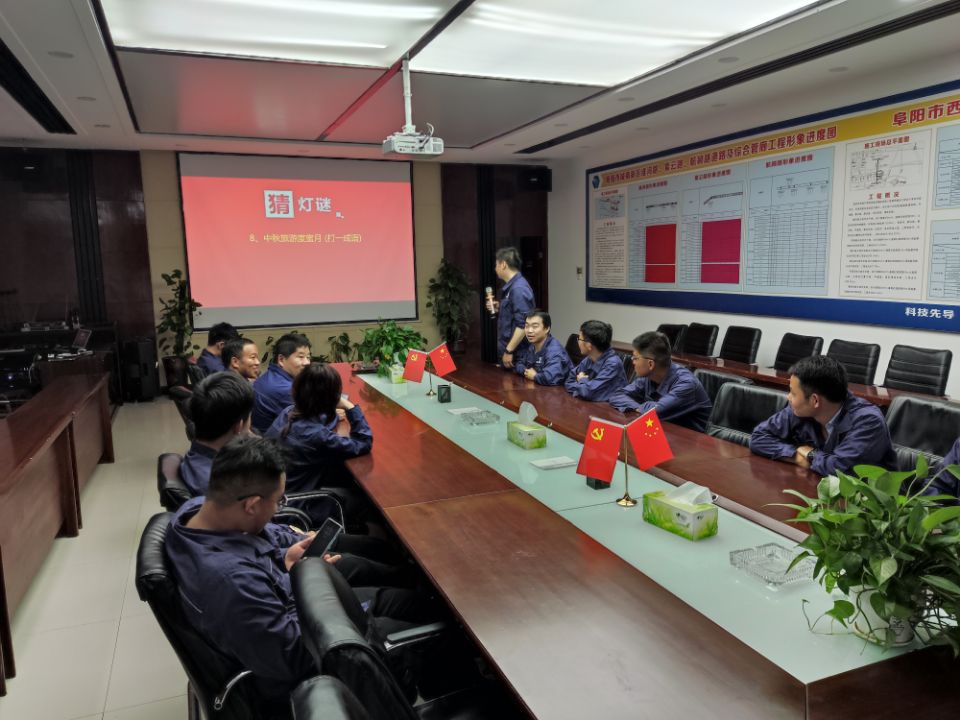 9月21日傍晚,正值中秋佳节,阜阳西湖EPC项目部在会议室组织开展“庆中秋·品诗词·猜灯谜”主题活动。