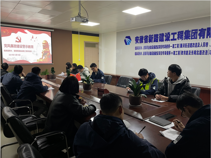 为了促进项目人员依法履职、廉洁从业、坚持道德操守的工作作风,12月16日晚上,临泉基础设施项目部组织全体员工开展党风廉政学习教育活动。