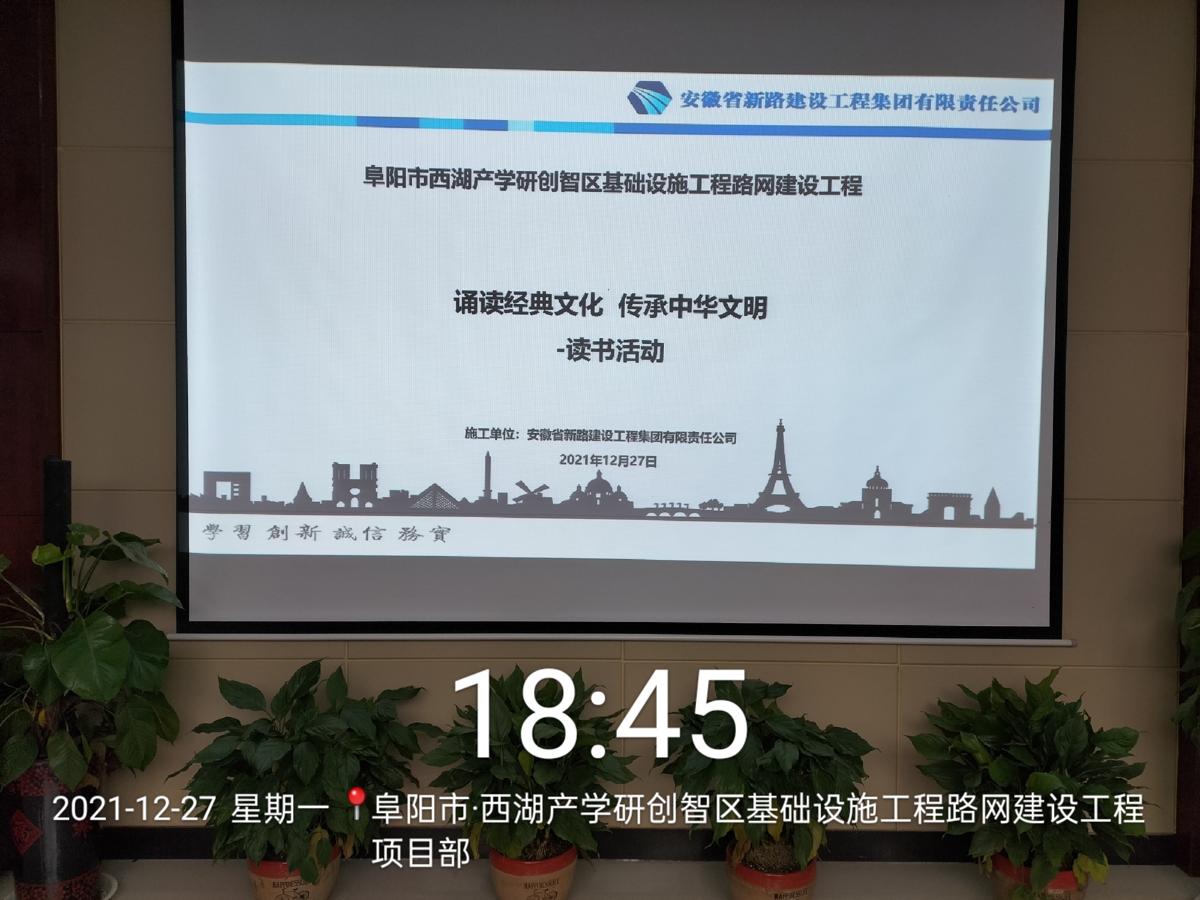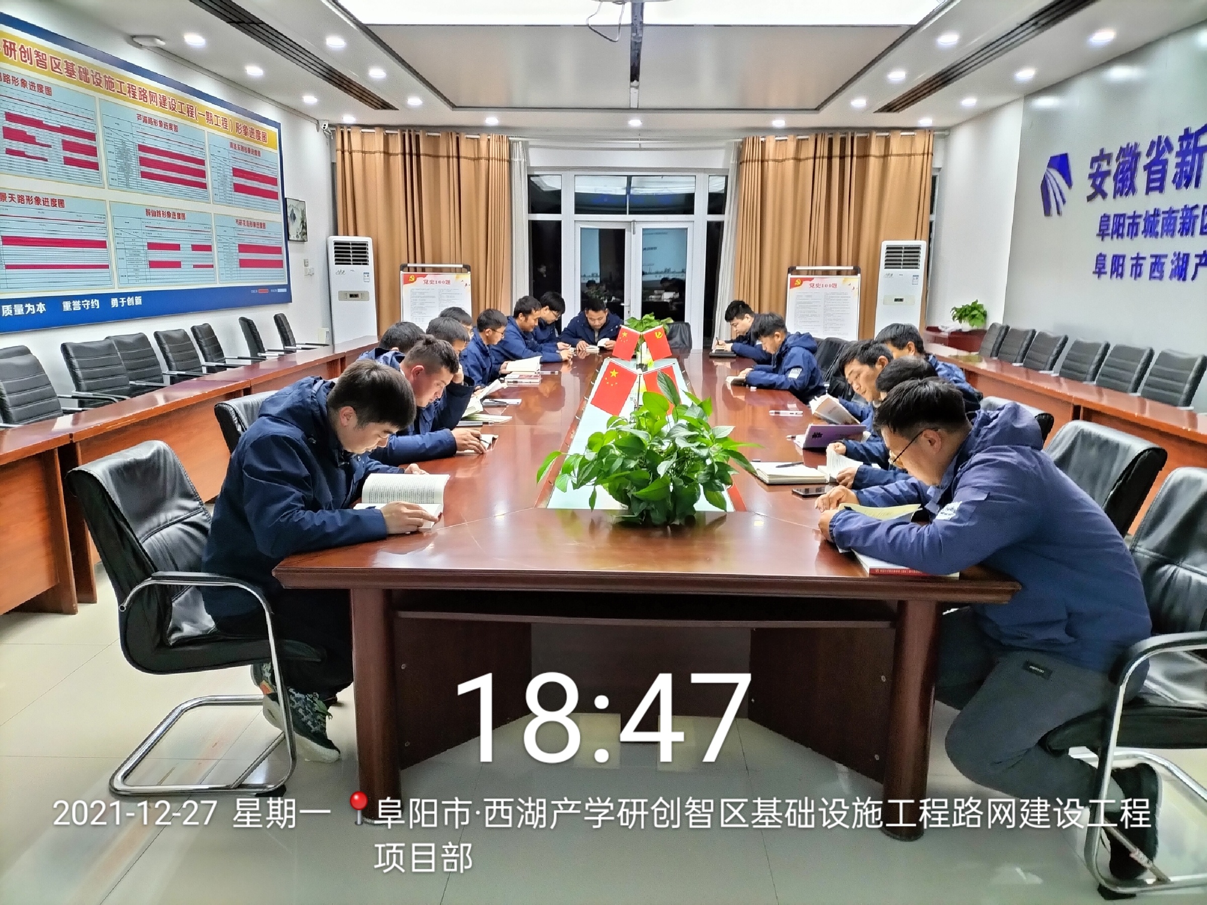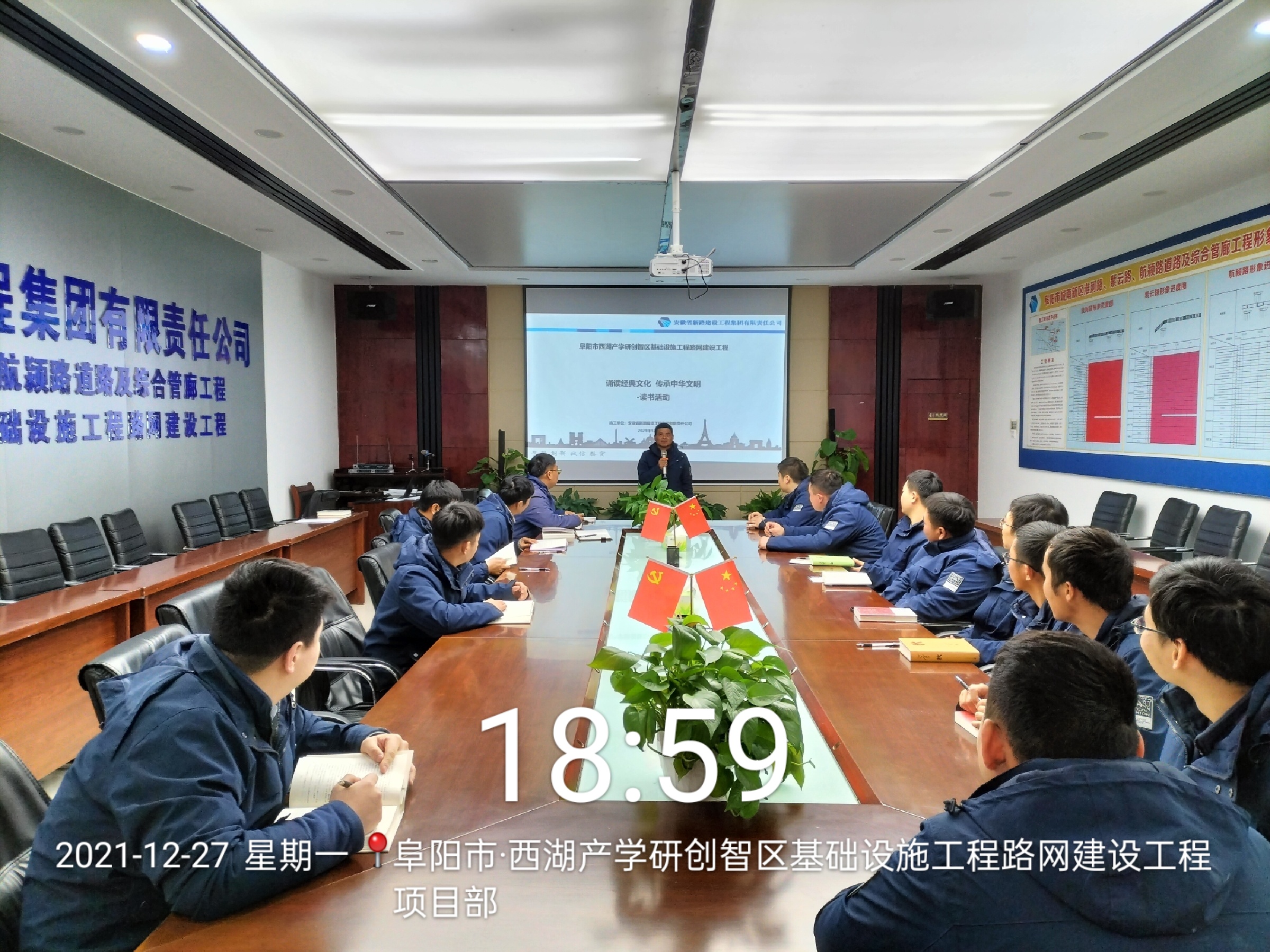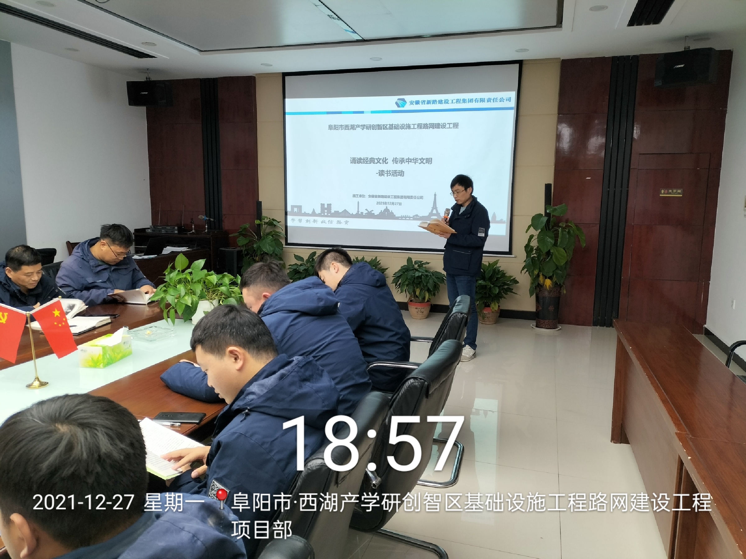 为弘扬中华民族的优秀传统文化,丰富员工们的精神世界,2021年12月27日阜阳市西湖产学研创智区基础设施工程路建设工程项目部开展“诵读经典文化,传承中华文明”读书活动。