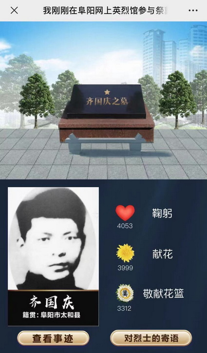 整个活动为了深入开展“我们的节日·清明节”——网上祭英烈,寄托哀思,推动“做一个有道德的人”主题活动纵深开展,引导项目全体员工积极参与爱国主义教育活动,继承弘扬革命先烈优秀品质,综合办公室带领大家进行网上献花活动,要求全体人员通过“中华英烈网、阜阳文明网、阜阳公众网”微信公众号平台进行“网上祭英烈”活动。倡导清明祭祀活动用网上祭扫、家庭追思、献花等文明、环保、绿色的方式代替传统的习俗表达自己对于逝去亲人的追思和缅怀。