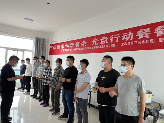 为了进一步弘扬我国勤俭节约的传统美德,厉行勤俭节约,创建节约型项目部,4月23日上午,太和税镇及管网项目开展“勤俭节约”主题教育活动,通过宣读方案、发动倡议书的形式,向项目全体人员发出“勤俭节约,从我做起”的倡议。