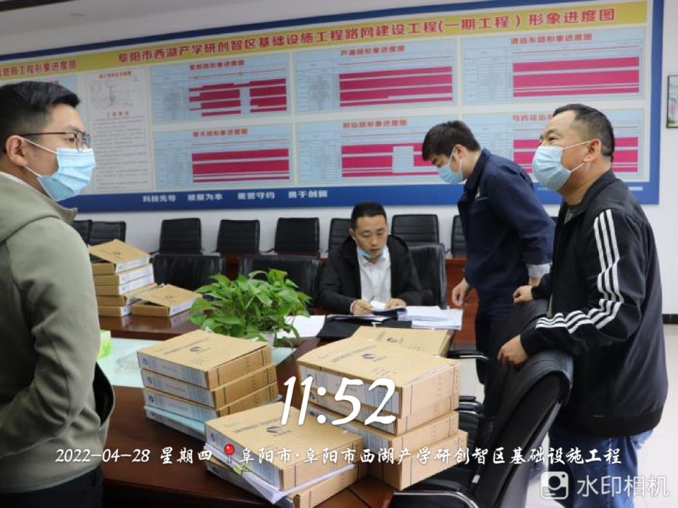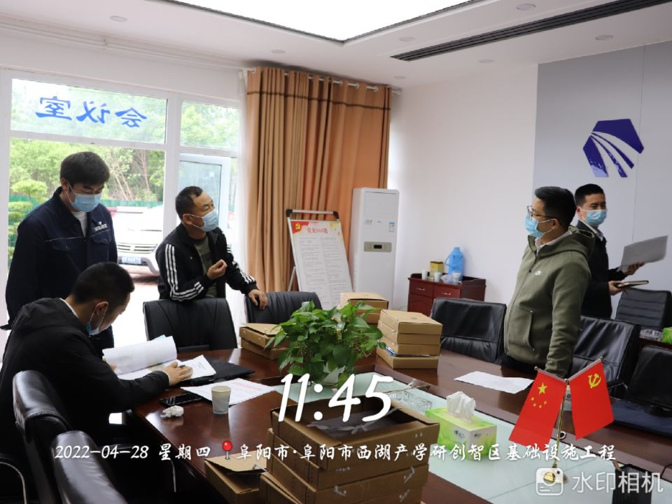 4月28日上午,市交投公司疫情防控落实情况专项检查小组一行在集团公司副经理李超、安全部长苗玉磊陪同下赴阜阳西湖EPC项目部检查指导工作。