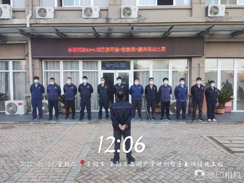 为传播集团公司企业文化;增强项目团队凝聚力;同时提高项目人员的组织、协调、创新能力,培养员工的团队意识与合作能力,阜阳西湖EPC项目部于5月03日中午举行“抢板凳”趣味比赛活动。