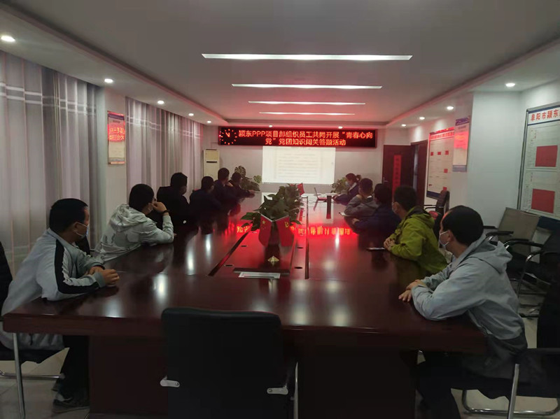 为庆祝中国共青团成立100周年,进一步强化党史学习教育,激励广大青年干部职工继承和发扬党的优秀传统和优良作风,颍东PPP项目部于5月12日下午,开展了“青春心向党”党团知识闯关答题活动。