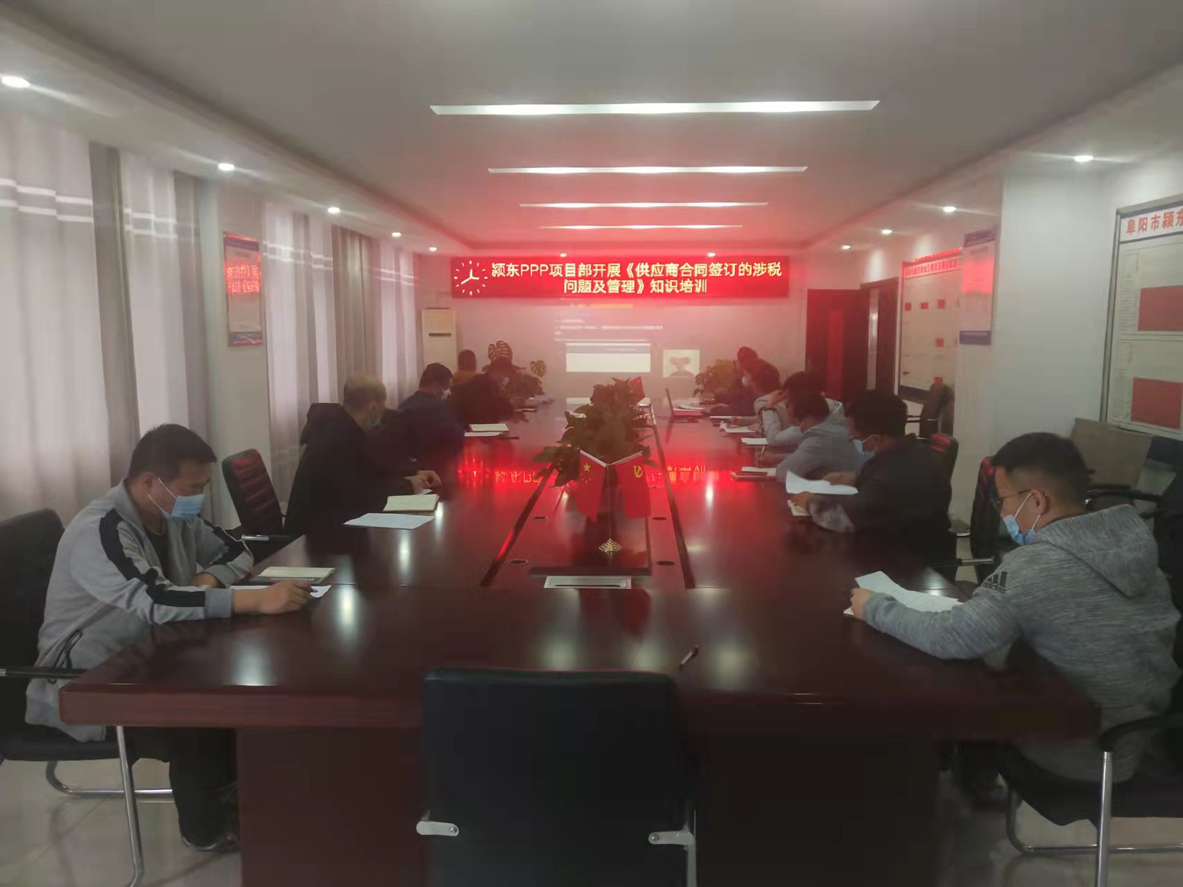 为增强广大干部职工的财税风险控制意识,5月13日下午,颍东PPP项目部在项目部会议室举办《供应商合同签订的涉税问题及管理》培训会,此次培训由项目经理王震主持,项目部全体职工参加。