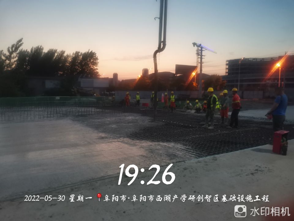 “人勤夏来早,大干正当时”,在一片繁忙的施工现场,工人们正在挑灯夜“战”,阜临河桥桥梁现浇板最后一次浇筑正式开始,本次浇筑完成后,阜临河桥将全部完成现浇梁浇筑,实现全幅贯通,后续将进入桥梁附属结构施工阶段。