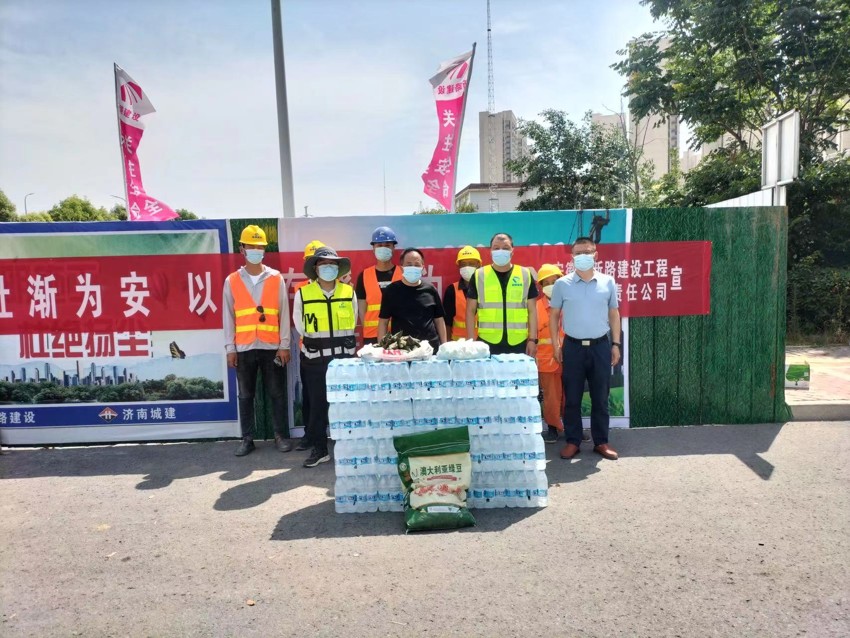 此次慰问活动项目部为各作业班组一线工人送上了粽子、鸭蛋、绿豆、西瓜、矿泉水等慰问品。刘明华经理向坚守在施工一线的工人们表示衷心的感谢和节日的问候,感谢他们舍小家、为大家,坚守工作岗位,为项目建设所付出的努力和作出的贡献。同时要求各班组长要在进入暑期前做好降温防护、食宿安全、疫情防控、员工关爱等工作。
