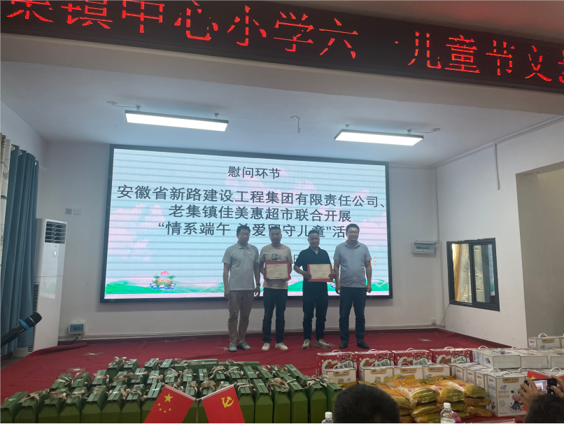 6月1日上午,在临泉县老集镇人民政府朱继奎副书记的组织下,临泉老集产业园项目部与老集镇佳美惠超市联合开展了“情系端午,关爱留守儿童”主题活动,由我部刘亮亮带队慰问老集镇中心小学,为广大少年儿童送去节日的问候与祝福。