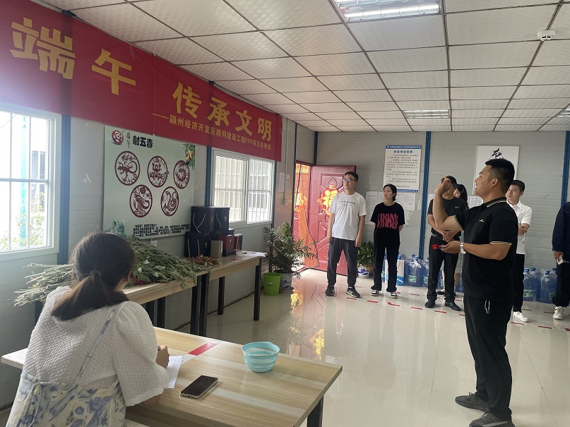 端午节是中国民间十分盛行的民俗大节,是中华民族自古以来的传统习惯。为进一步加强项目职工思想道德教育,增进项目职工对中国传统文化的了解和兴趣,培养职工的民族自信心和自豪感。2022年6月3日颍州PPP项目开展“品味端午、传承文明”端午节活动。