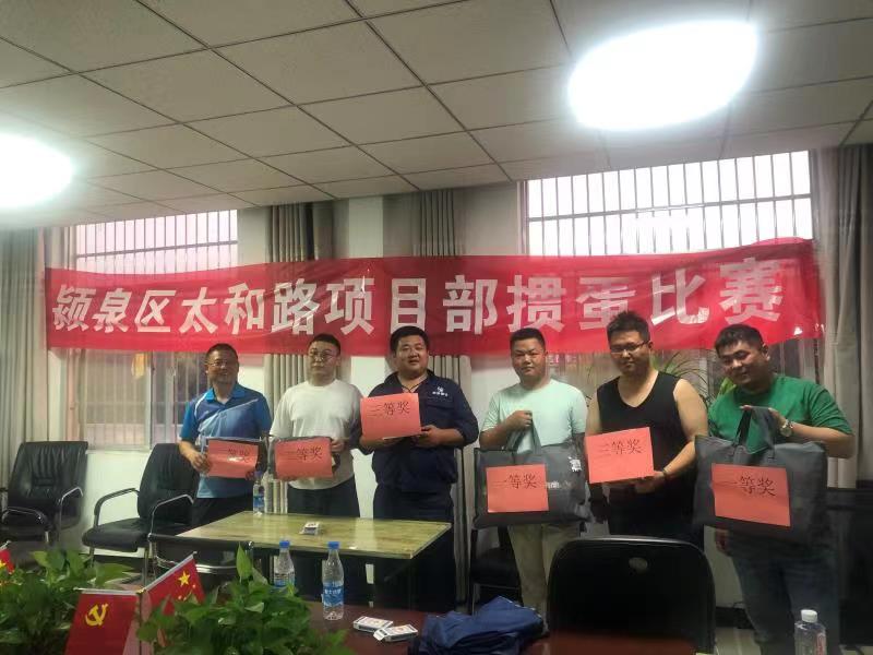 为丰富职工业余文化生活,增强员工的认同与归属感,6月23日下午,颍泉区太和路项目部利用阴雨天气,邀请监理单位共同举行了“掼蛋”和乒乓球比赛。